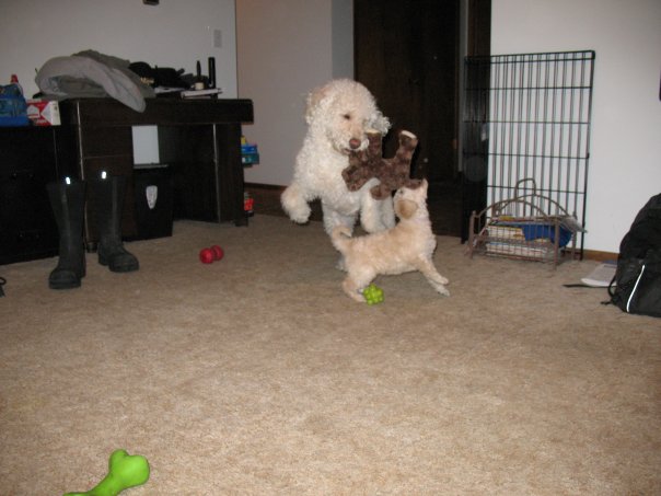 still my girl...Eric hasn't stolen her over to his side yet :) Thank you for the two best pups we could ever ask for...we are truly blessed to have these two crazy doodles.