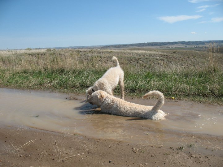 ankle deep and if it's muddy she prefers to walk around the puddle